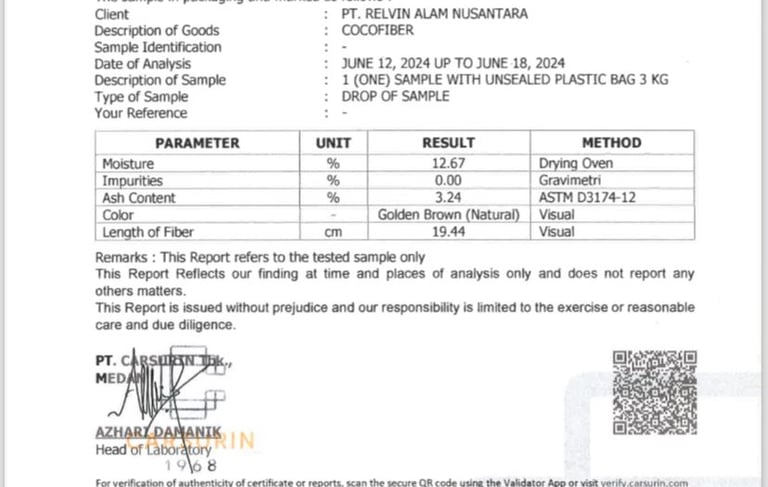 Tanamina cocofiber is processed through controlled screening and cleaning stages and verified by laboratory testing, which shows 0% impurities, ensuring exceptional cleanliness and consistency. Designed for professional horticulture and substrate blending applications, our cocofiber maintains stable structure, low dust, and reliable performance. Product specifications can also be adjusted according to market and customer requirements, allowing flexibility while maintaining the highest quality standards
